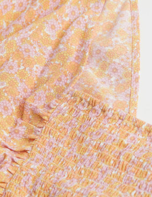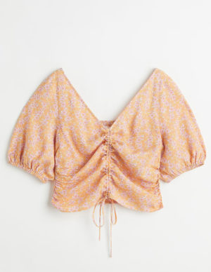 L XLТоп з тканої тканини з надрукованим візерунком. V-подібний виріз горловини та шнурок спереду з вузькими вертикальними зав’язками спереду для драпірованого, зібраного ефекту. Квадратний виріз горловини ззаду з обгорткою та короткими пишними рукавами з вузькою, покритою гумкою на манжетах. Без підкладки
