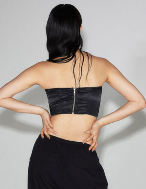 XS S M LКороткий корсет-топ-бандо з вирізом «сердечко», кісточками спереду та блискавкою ззаду. Заокруглений поділ спереду. На підкладці