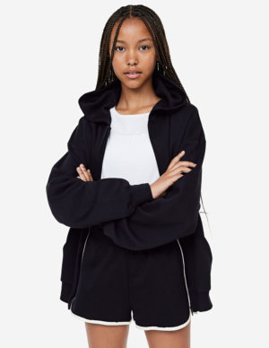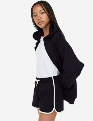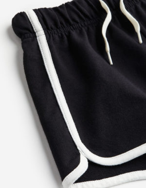 164 смШорти із легкої бавовняної світшотної тканини з боковими смугами контрастного кольору. Еластична талія зі шнурком і закруглені краї з обробкою