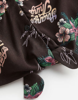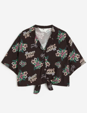 146 см 158 см 164 смБлузка вільного крою з віскози з принтом. Курортний комір, ґудзики спереду, спущені плечі та короткі рукави. Зав’язка по низу