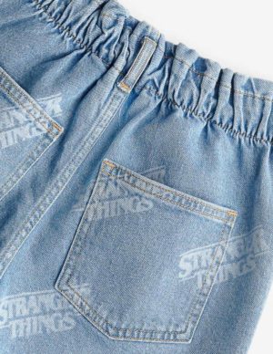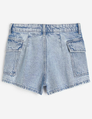 158 см 164 см 170 смШорти вільного крою з деніму з праної бавовни з легким еластичним принтом. Вишита деталь на одній штанині. Висока талія-мішок, пояс з покритою гумкою та імітація ширинки на ґудзику. Передні та задні кишені