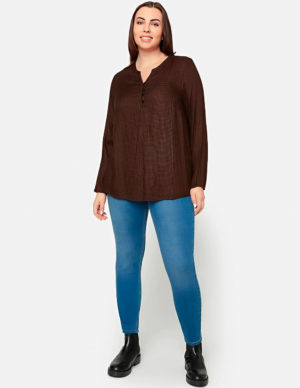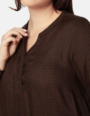 4XLБлуза з V-подібним вирізом горловини з планкою на ґудзиках із віскози в клітинку. Довгі рукава та кокетка ззаду