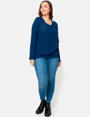 XXL 6XLБлуза з V-подібним вирізом горловини і квадратний виріз на грудях, оброблений ефектом рюшів, який спадає вниз. Із віскозної тканини та кокеткою ззаду