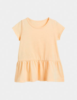 74 смФутболка з круглим вирізом горловини із бавовняного трикотажу з принтом. Внизу рукавів присборенный волан, прихована застібка на одному плечі