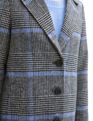 S M XLКуртка з лацканами та довгими рукавами. Має кишені спереду з металевими блискавками, підкладку і асиметричну блискавку спереду