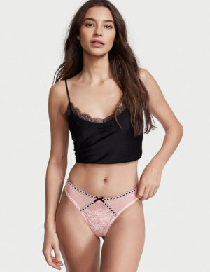 XLТрусики з мережива та сітчастої тканини із розрізами з яких визирає стрічка