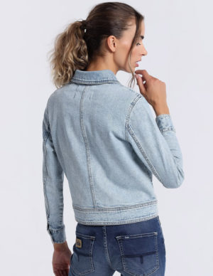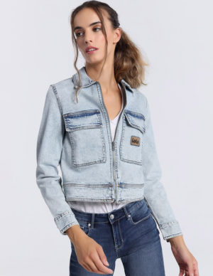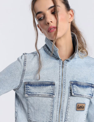 SДжинсовка із бавовняного деніму з коміром. Спереду дві нагрудні кишені з клапоном на одній кишені нашивка з логотипом Lois. Застібка на блискавку