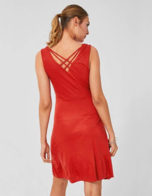 XL XXLКоротка сукня із м`якого віскозного трикотажу на широких бретелях. V-подібний виріз горловини, на спині декоровано переплетенням тонких бретелей