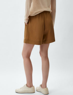 S M LШорти до коліна з тканого матеріалу з ліоцеллу з легким блиском, вільного крою. Висока талія з прихованою гумкою та діагональними боковими кишенями