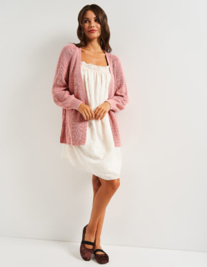 S MКоротка сукня з ліоцеллу та органічного льону. Вільний крій з V-подібним вирізом та куліскою спереду, довгі, об’ємні рукави-балони з вузькими манжетами на ґудзиках, шов на стегнах із закритою гумкою та розкльошена спідниця. Без підкладки