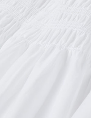 LСукня до литок з бавовняної тканини з облягаючим ліфом. Вузькі регульовані, знімні бретельки та оздоблена рюшами зверху. Без підкладки