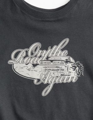 XXS XS LФутболка оверсайз з м’якого бавовняного трикотажу з принтом спереду. Ребриста обробка навколо вирізу горловини та спущені плечі