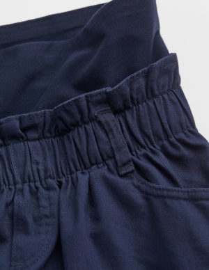 XLШорти для вагітних з бавовняного твілу з закритою гумкою та рюшами на талії, а також широкою еластичною вставкою зверху для найкращої посадки на животику. Фальшива ширинка та передні кишені