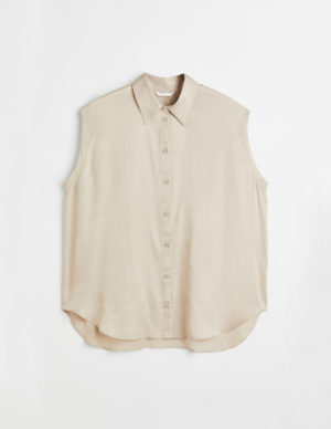 XXLСорочка вільного крою без рукавів з м’якого драпірованого атласу. Загострений комір, застібка на ґудзики спереду, двошарова кокетка ззаду та заокруглений поділ. Довша ззаду
