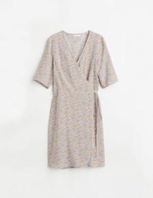 4XLСукня з короткими рукавами, довжиною до колін, з м’яко драпірованої віскозної тканини, V-подібним вирізом та запахом спереду з вузькими зав’язками збоку. Без підкладки
