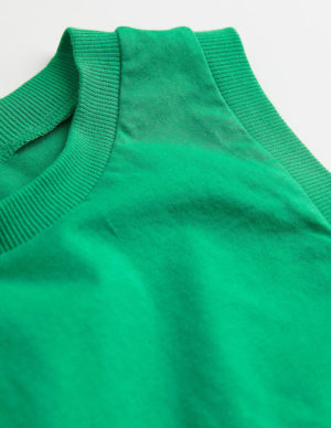 MУкорочений топ з м’якого бавовняного трикотажу з ребристою окантовкою по вирізу горловини та проймам, а також необробленим подолом