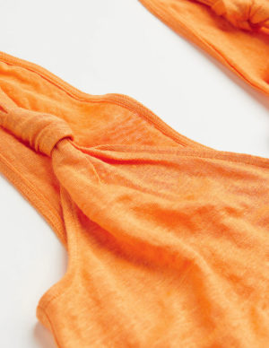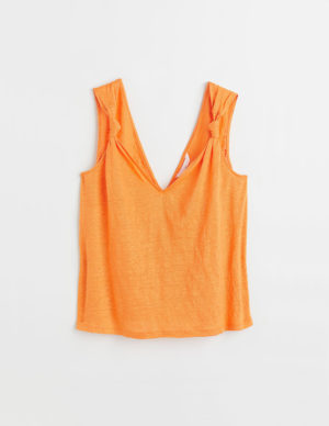SМайка з м’якого, повітряного льону з V-подібним вирізом спереду та ззаду, бретелями з декоративним вузлом спереду та прямим подолом