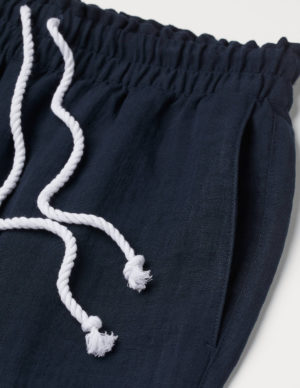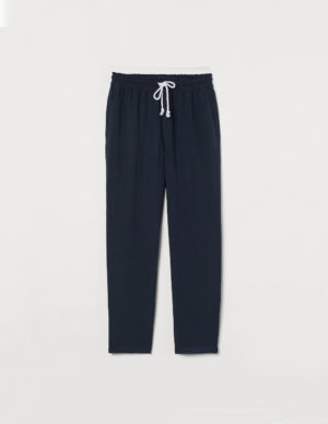 SШтани до щиколотки з м’якої віскозної суміші. Мають стандартну талію з прихованою гумкою, шнурком і бічними кишенями