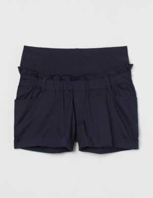XS MШорти для вагітних з цупкої бавовняної саржі. Модель із закритою гумкою на талії, обробкою з рюшами, декоративна застібка. Передні кишені та вшиті підвороти. М’яка трикотажна панель на талії для оптимальної посадки на животі