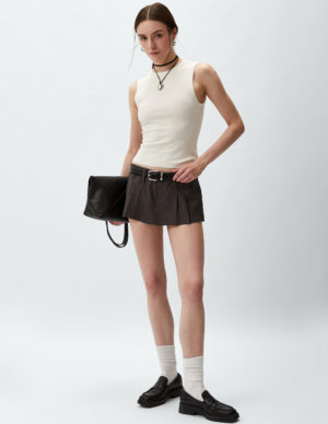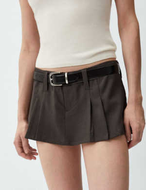 SСпідниця з твілу з низькою талією, застібкою на блискавку та ґудзики, а також двошаровим передом зі складками