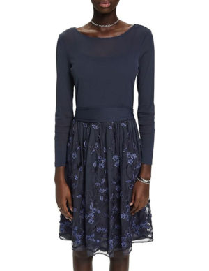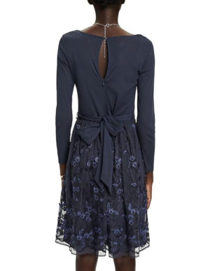 S M LКоротка сукня з довгими рукавами, спідниця з вишивкою, застібається на блискавку позаду