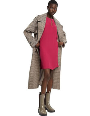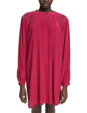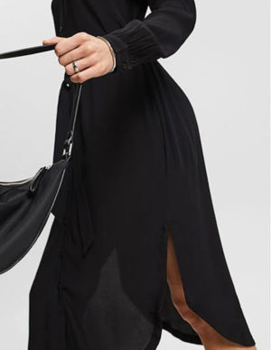 S M L XXLСукня із м’якої віскозної тканини з коміром, спереду застібається на ґудзики, заокруглений низ