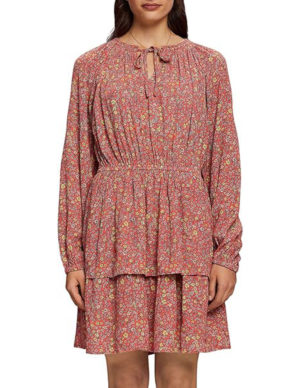 XLСукня в квітковий принт із м’якої віскозної тканини з довгими рукавами та ярусною спідницею