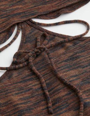 S M LКоротка сукня з м’якої тонкої в’язки з відкритими частинами та зав’язками на талії та довгими рукавами