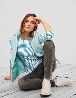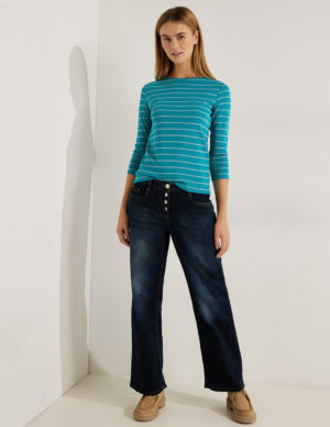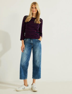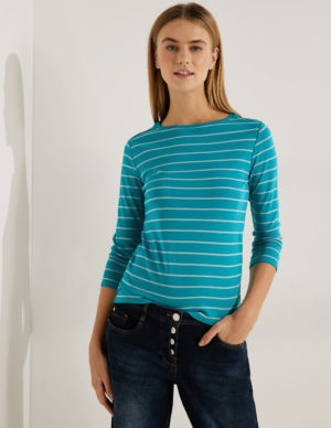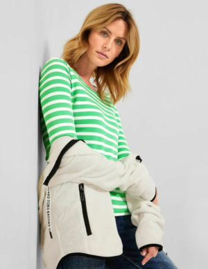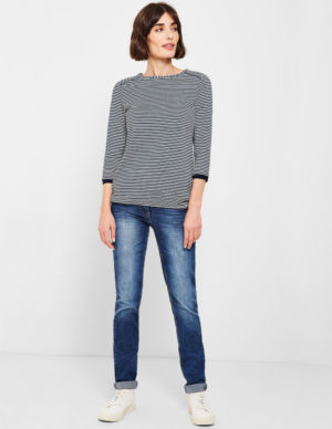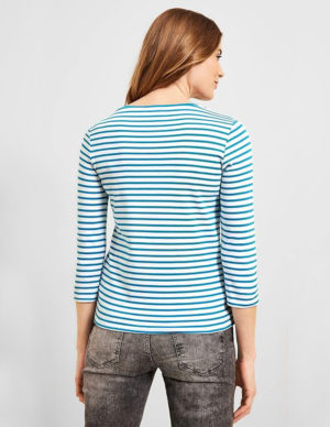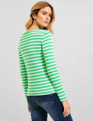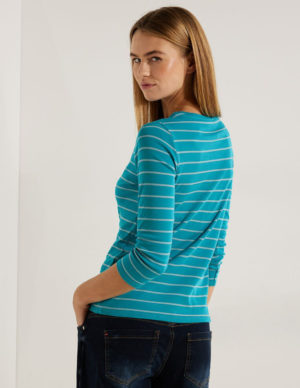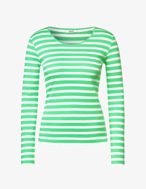 XS XLЛонгслів у смужку із суміші бавовни та поліестеру. Круглий виріз горловини, резинка по низу