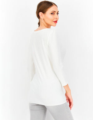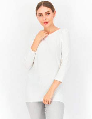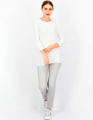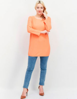 XS S XXLПодовжений лонгслів з круглим вирізом горловини із віскози, рукав три чверті. Еластичний низ