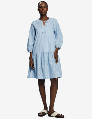 XS S M L XL XXLКоротка розкльошена сукня із суміші бавовни та поліаміду, рукава довжиною три чверті
