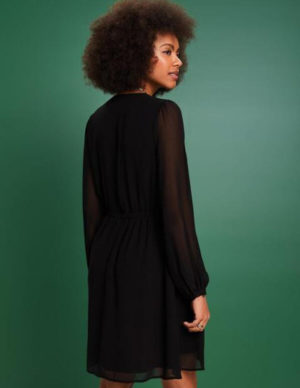 XS S M L XLРозкльошена сукня з довгими широкими рукавами, на спині застібається на блискавку