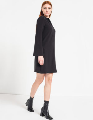 S M L XXLСукня із м’якої віскозної тканини з коміром, спереду застібається на ґудзики, заокруглений низ