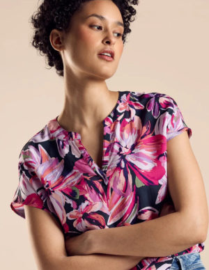 S XLБлуза із віскозної тканини, круглий виріз горловини, спереду застібається на ґудзики