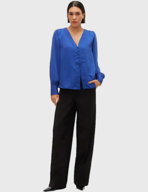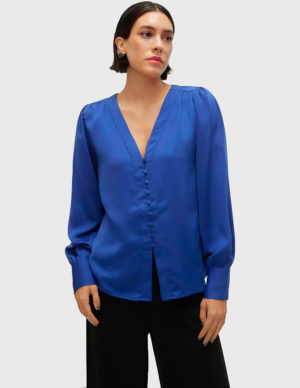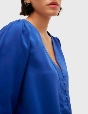 MБлуза з довгими рукавами-буфами. V-подібний виріз горловини, застібається на ґудзики