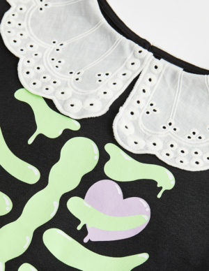 104 см 110 см 92 смКостюм із легкої світшотної тканини з принтом, що складається зі світшота та джоггерів. Світшот має спущені плечі та рубчик на горловині, манжетах і подолу. Джоггери мають еластичну талію і манжети в рубчик