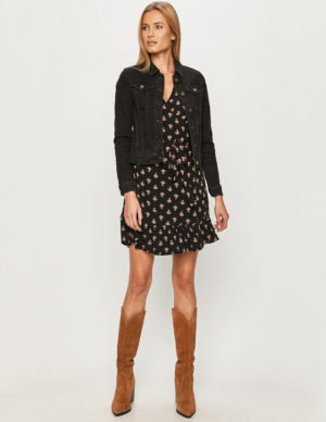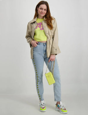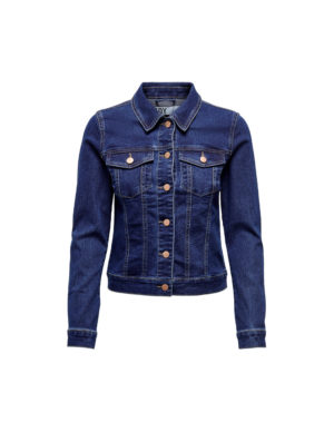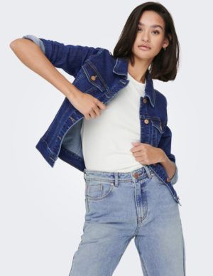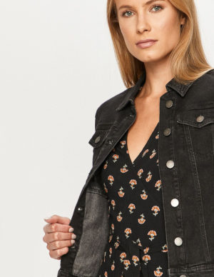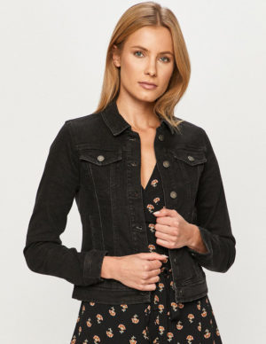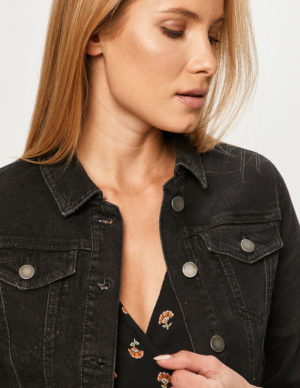 SКуртка з бавовняного деніму з коміром, застібка на металеві ґудзики. Розрізні рукави та манжети на ґудзиках. Нагрудні кишені з клапаном та ґудзиком, спереду прорізні кишені