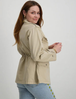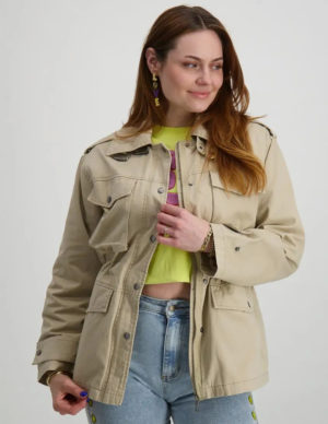 S MПарка з коміром із бавовняної тканини. Спереду застібається на блискавку та кнопки під прихованою планкою, талія регулюється шнурком. Спереду дві нагрудні кишені та дві кишені внизу з клапаном