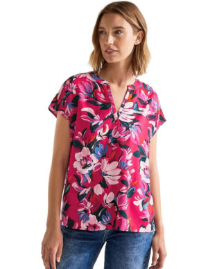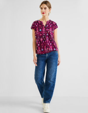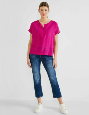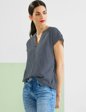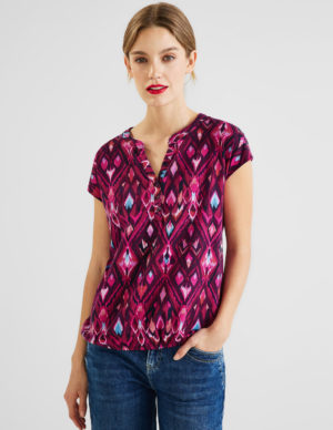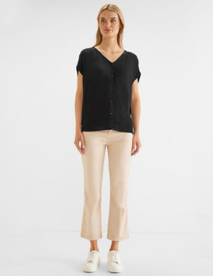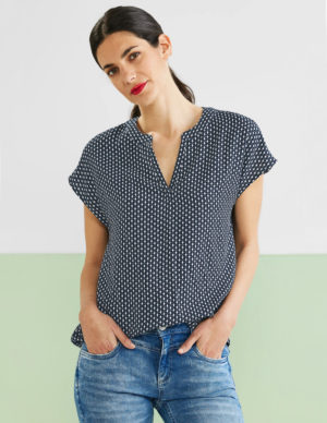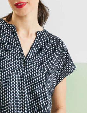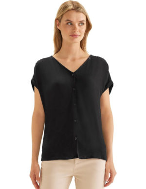 XS MБлуза з короткими рукавами, із м’якої віскозної тканини. V-подібний виріз горловини, спереду застібається на ґудзики