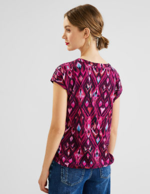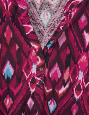 XS MБлуза в принт з короткими рукавами із бавовняного трикотажу, спереду застібається на ґудзики зверху