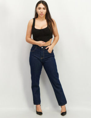 XXSДжинси із щільного бавовняного деніму, спереду застібаються на ґудзик та блискавку. Дві прорізні кишені спереду та дві накладні кишені ззаду