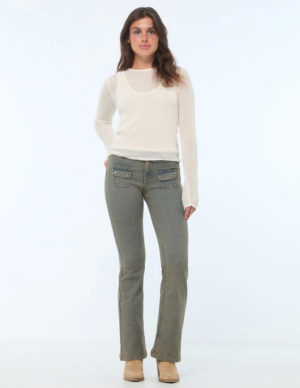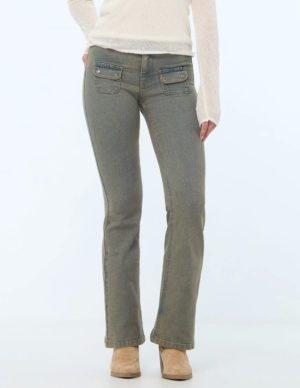 20 22 LРозкльошені джинси із бавовняного деніму, спереду застібаються на ґудзик та блискавку. Дві накладні кишені з клапаном спереду застібаються на кнопки та дві накладні кишені ззаду