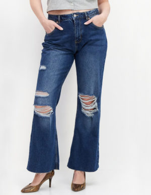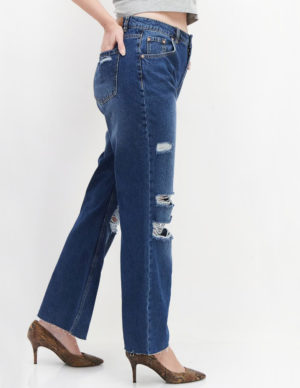 SРозкльошені джинси з п’ятьма кишенями із щільного бавовняного деніму, спереду застібається на ґудзик та блискавку