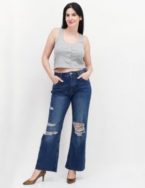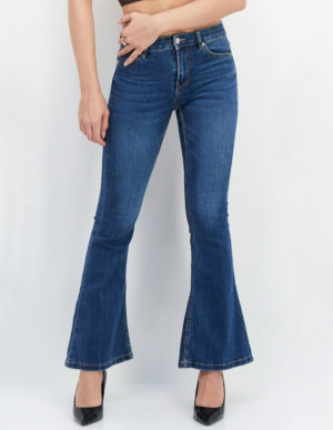 22Розкльошені джинси з п’ятьма кишенями із бавовняного деніму, спереду застібається на ґудзик та блискавку