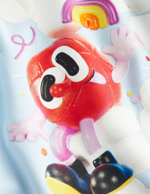 110/116Футболка оверсайз в сіточку з принтом. Круглий виріз горловини в рубчик, спущена лінія плечового шва