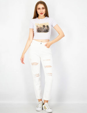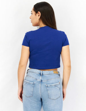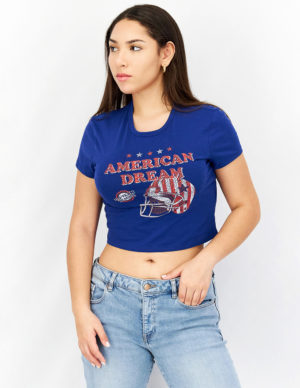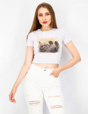 SУкорочена футболка з круглим вирізом горловини із бавовняного трикотажу з принтом