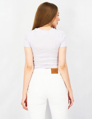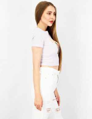 LУкорочена футболка з круглим вирізом горловини із бавовняного трикотажу з принтом