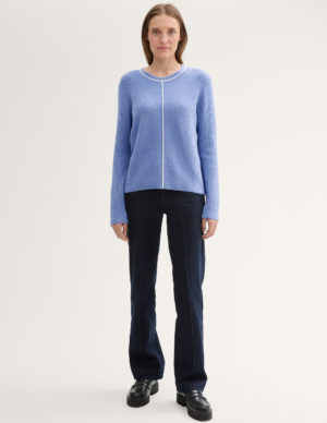 S M L XL XXL 3XLСветр в рубчик із пряжі з додаванням вовни. Круглий виріз горловини, контрастна строчка спереду
