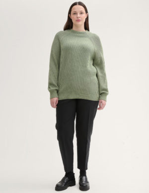 3XL 4XLСветр в рубчик із пряжі з додаванням вовни, рукав-реглан, висока горловина