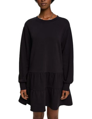 S LСукня із бавовняної світшотної тканини, круглий виріз горловини, ярусний низ спідниці